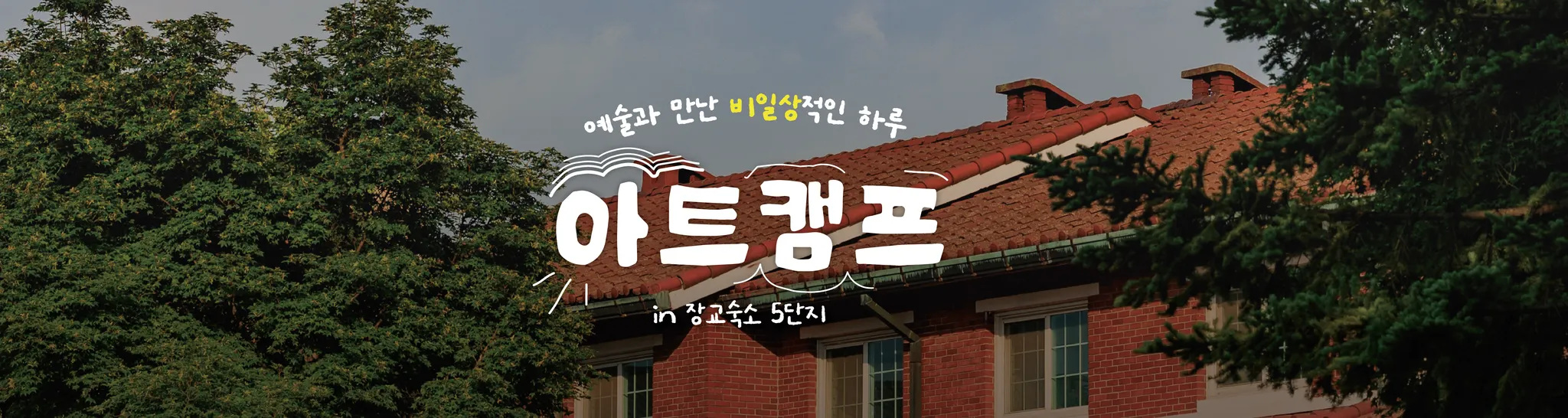 용산공원 안에 위치한 장교숙소 5단지가 전부 ‘아트캠핑장’으로 변신합니다. 이국적인 공원에서 예상치 못한 예술적인 순간들을 마주할 수 있어요. DJ 공연부터 라이브 드로잉, 아트테라피까지. 다채로운 이벤트가 실시간으로 진행됩니다. 특별한 음식도 준비된 이번 아트캠프는 누구나 참여할 수 있는데요.
